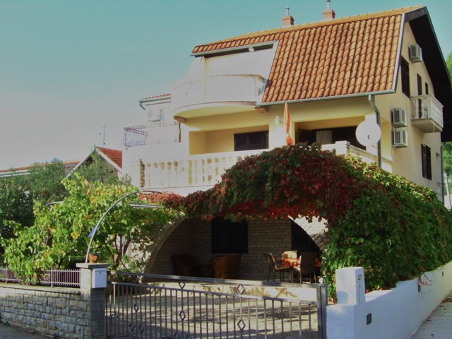 Das Haus mit Meerblick ist ca. 30-40 m vom Strand entfernt und befindet sich am Ende einer Sackgasse. Es sind nur 2 Einheiten zur Vermietung im Haus und im Erdgeschoss wohnt der Eigentümer. 2 Appartments, 4+1 Person pro Einheit stehen zur Auswahl. Die Appartments sind über eine überdachte und abschließbaren Außentreppe erreichbar . Pro Stockwerk ist jeweils nur 1 Appartment, ca. 60 m² groß. Beide Appartments sind ausgestattet mit Klimaanlage (Kühl-/Heizfunktion), SAT-TV, DVD, CD, Radio, Staubsauger. Außen- Dusche und gemauerter Grill mit Gartenmöbeln im Hof sind zur gemeinsamen Nutzung vorgesehen. Das Grundstück ist umzäunt und pro Appartment steht ein Parkplatz im Hof zur Verfügung.